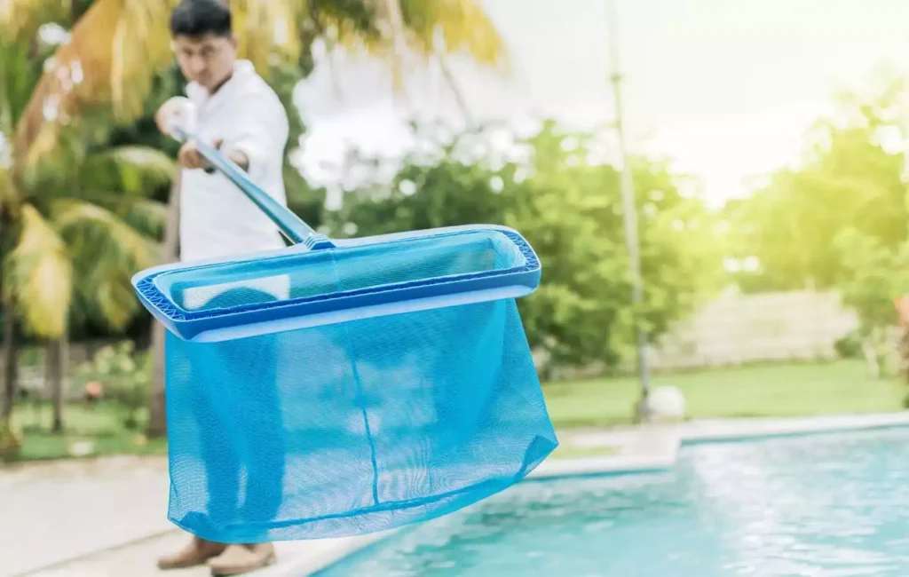 - Skim net the pool for debris